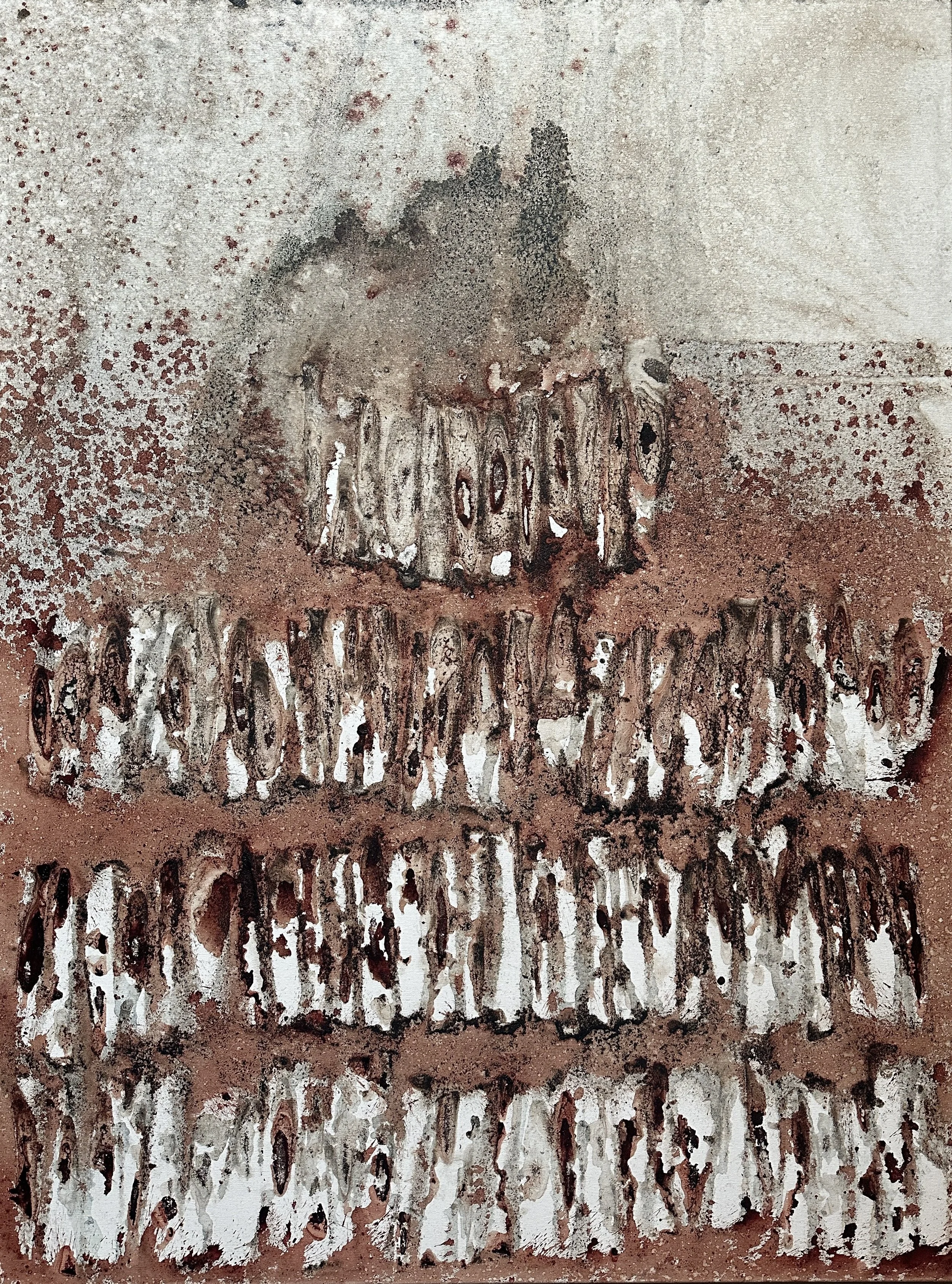 Marrow bones, short rib bones, teas & squid ink - 2025 $850.00 Egg shells, broken bowls, cheesecloth, teas, saffron & squid ink - 2025 $1,400.00 Honeynut squash seeds, shishito pepper stems, teas, saffron, turmeric & squid ink - 2025 $825.00 Sold out Weeks and weeks of herbs stems with squid ink, hibiscus & cheesecloth - 2025 $1,200.00 Short rib bones, parsley stems, sungold tomato stems, squid ink & chicory - 2025 $800.00 Spring vegetable trim with squid ink and corked wine infused with charcoal dust on canvas - 2025 $1,250.00 Carrot tops, teas, squid ink, annatto, turmeric, black pepper - 2025 $1,400.00 Ceylon tea, turmeric, cocoa, frozen corked wine, charcoal & squid ink on canvas - 2025 $1,375.00 Broken plates and bowls, green garlic, bay leaf, squid ink & hibiscus on canvas - 2025 $1,225.00 Beef back rib bones & squid ink - 2024 $865.00 Asparagus trim, ramp roots, pig blood & squid ink - 2024 $915.00 Marrow bones, coffee, squid ink & kitchen tape - 2024 $1,345.00 Pig blood, squid ink, ice & burlap - 2024 $1,015.00 Vegetable scraps, pig blood, and hibiscus - 2024 $1,025.00 Achiote, cocoa, squid ink, pig blood & cheesecloth - 2024 $975.00 Achiote, asparagus trim, snap pea trim & pig blood - 2024 $1,230.00 Pork rib bones, chicory & cocoa - 2024 $985.00 Marrow bones, cocoa, cheesecloth & squid ink - 2024 $995.00 Sold out Short rib bones & pig blood - 2024 $875.00 Asparagus trim, snap pea trim, squid ink & turmeric - 2024 $945.00 Sold out Caul fat, charcoal dust & squid ink - 2024 $795.00 Short rib bones, charcoal dust & pig blood - 2024 $915.00 Frozen pig’s blood and frozen pea flower tea - 2023 $855.00 Roasted fish bones, squid ink & chicory - 2023 $625.00 Some of my favorite pigments with an empty frame - 2023 $695.00 Fennel tops, short rib bones, squid ink & pea flower tea - 2023 $850.00 Squid ink, burlap & pea flower tea - 2023 $985.00 Sold out Fingerling potato peels, chicory & squid ink - 2023 $695.00 Short rib bones, beef blood & bone marrow - 2023 $725.00 Leek tops, pig blood, charcoal dust & squid ink - 2024 $1,200.00 Sold out Marrow bones, cheesecloth, wine & charcoal - 2022 $555.00 Frozen cocoa, pig blood, squid ink, and shishito pepper stems on canvas - 2024 $1,350.00 Short rib bones, pig blood, charcoal dust, sea urchin broth, pea flower tea & oxidized potato juice - 2024 $1,150.00 Sold out